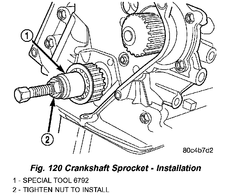 1. Install crankshaft sprocket using Special Tool 6792 (Fig. 120).