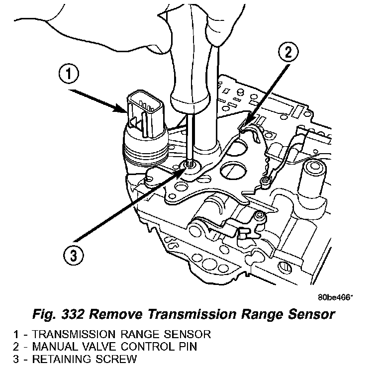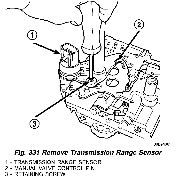 2) Remove transmission range sensor retaining screw (3) (Fig. 331) and remove sensor (1) from valve body