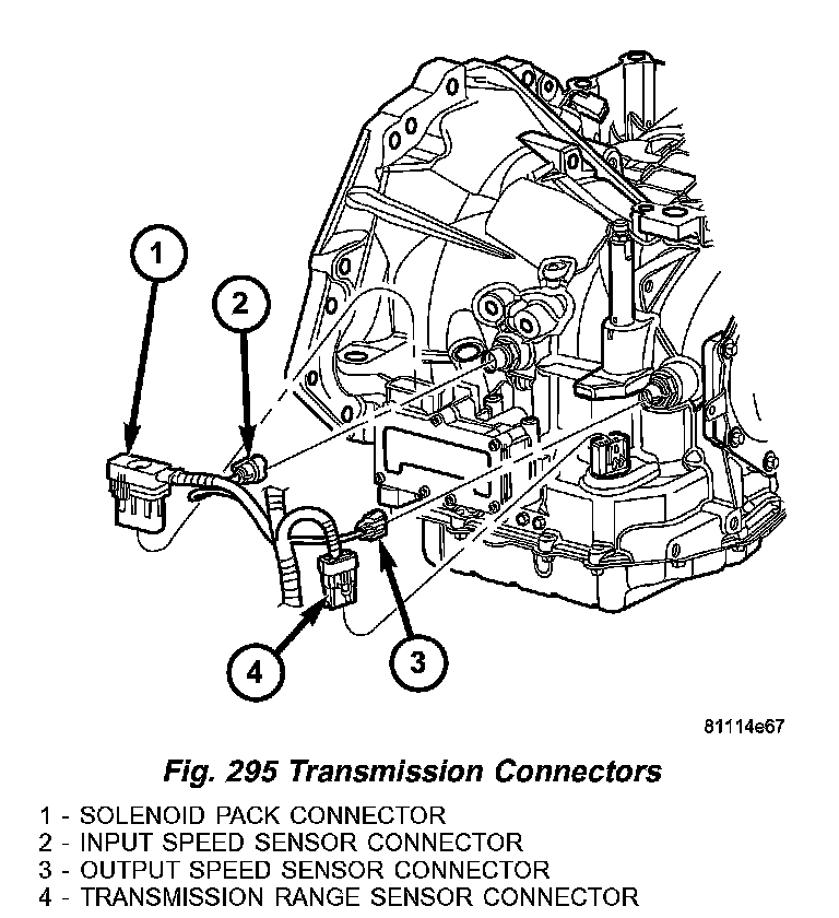 3) Disconnect solenoid/pressure switch assembly connector (1) (Fig. 295).