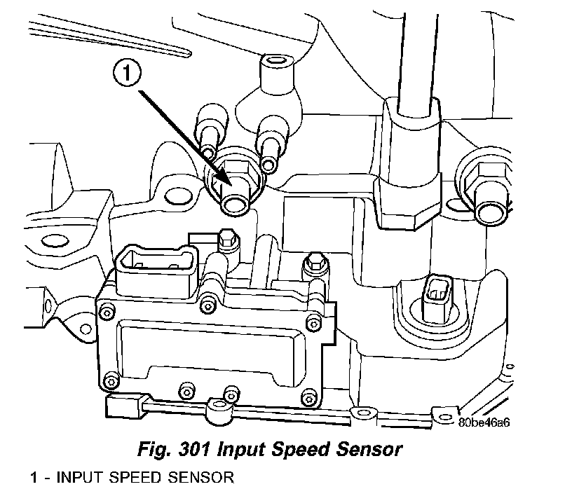 3) Install input speed sensor (1) (Fig. 301) and torque to 27 Nm (20 ft. lbs.).