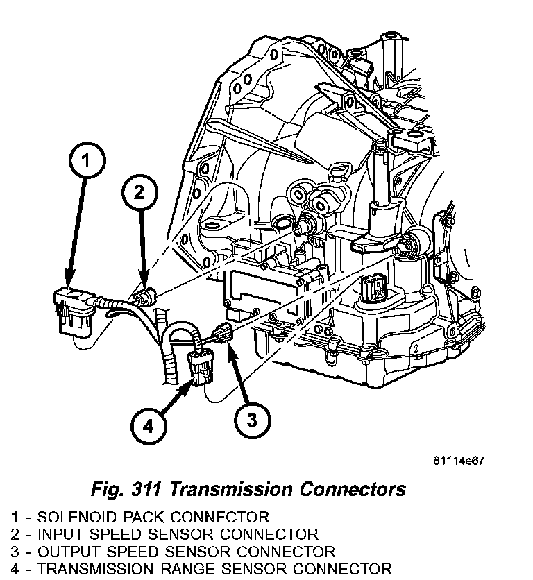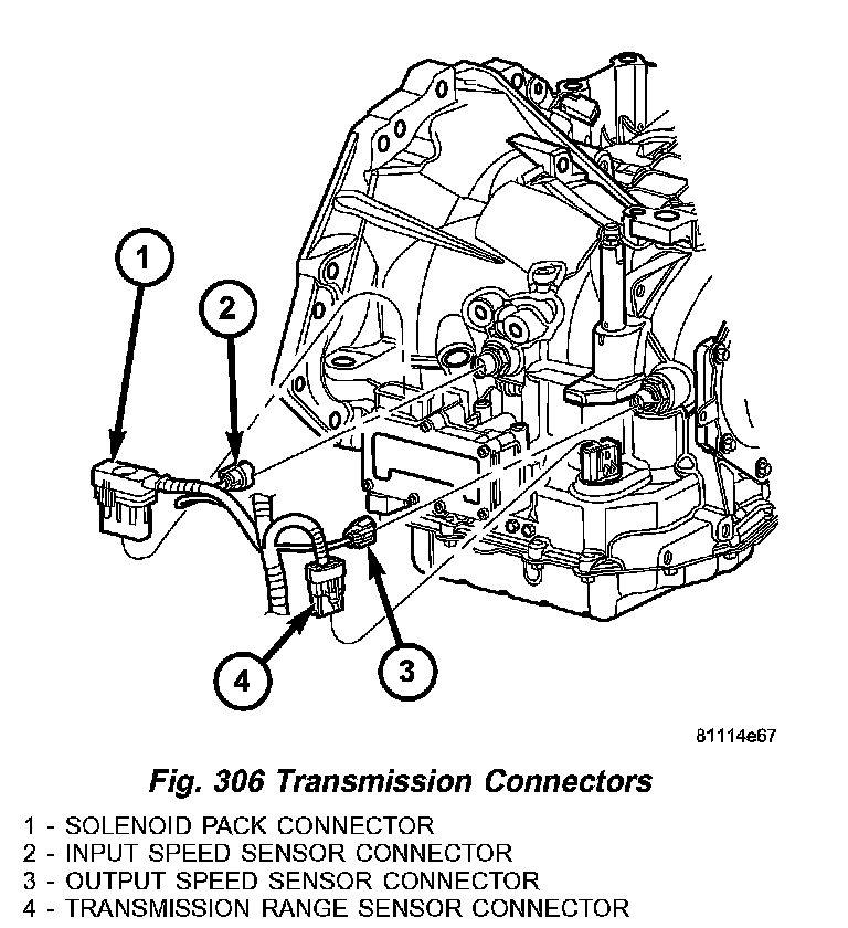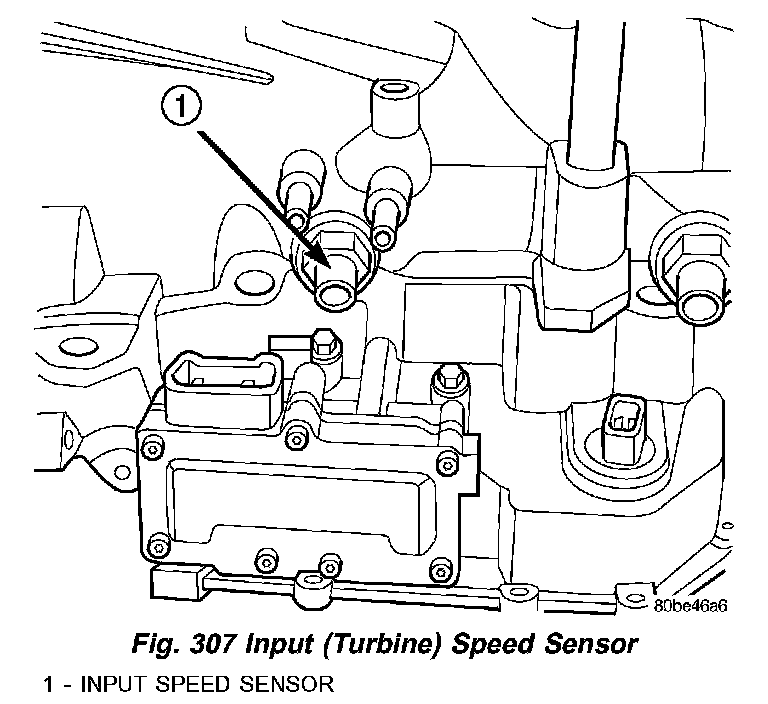 1) Disconnect battery negative cable. (2) Disconnect input speed sensor connector (2) (Fig. 306).