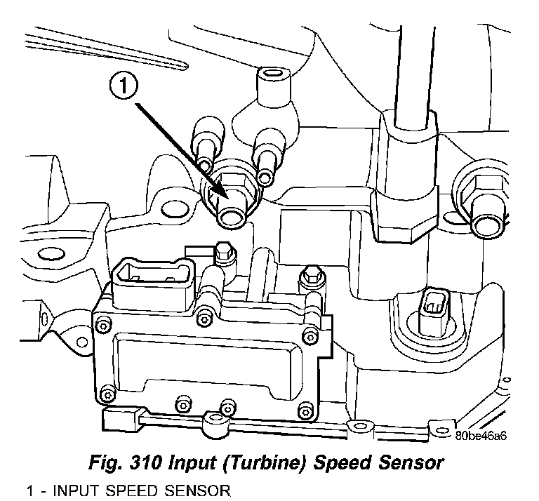 2) Install and tighten input speed sensor (1) (Fig. 310) to 27 Nm (20 ft. lbs.).