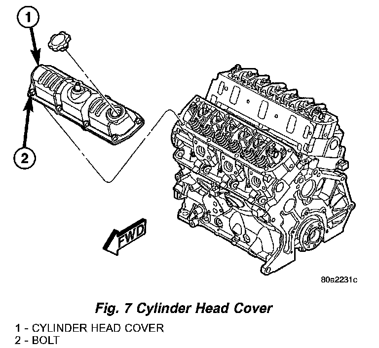 6. Remove cylinder head cover and gasket (Fig. 7).