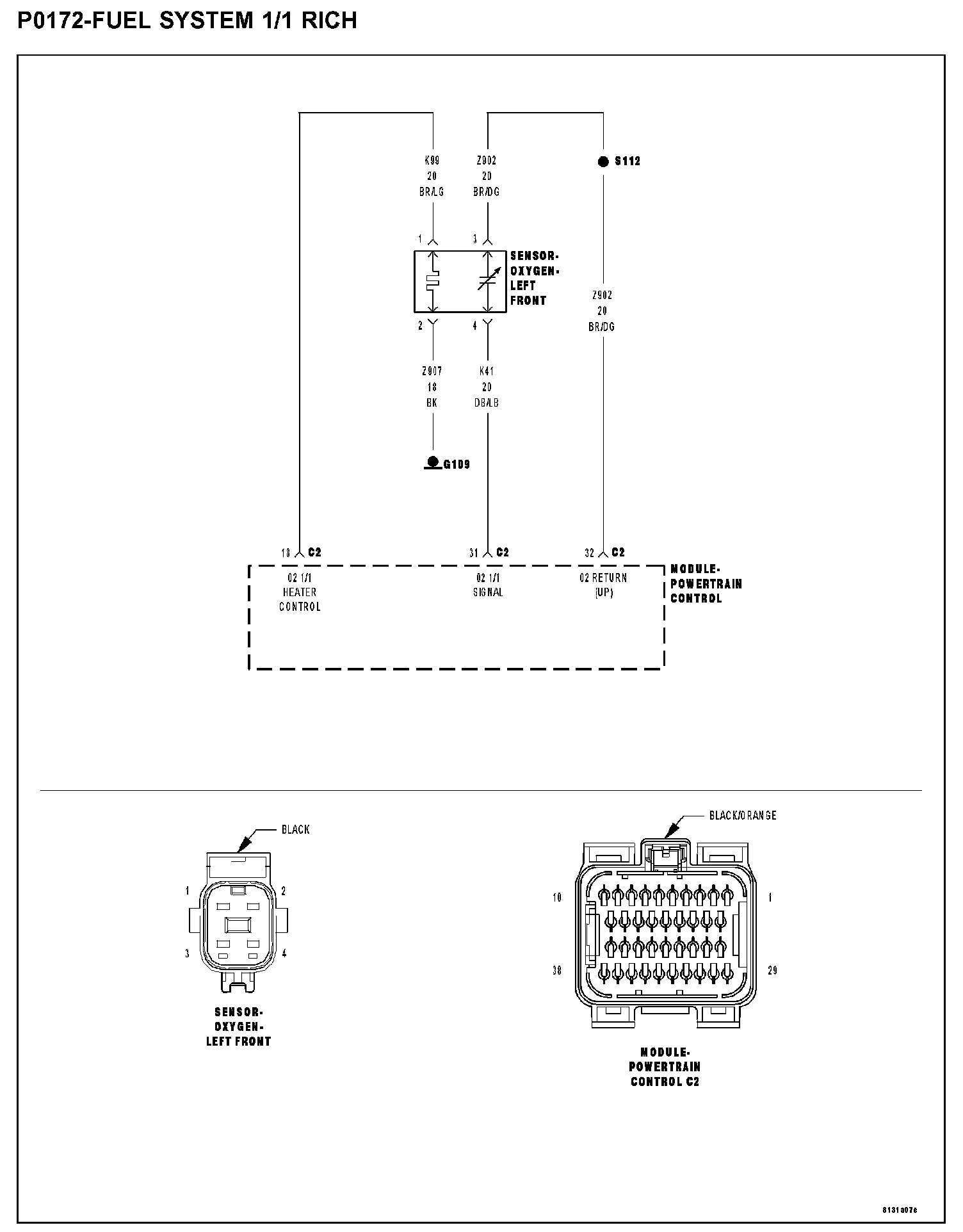 YES: Check the (K41) O2 Sensor 1/1 Signal circuit for damage, short to ground, open, or short to voltage. Inspect the O2 Sensor connector and the PCM harness connector. If OK, replace and program the Powertrain Control Module. Perform the POWERTRAIN VERIFICATION TEST. Powertrain Verification Test