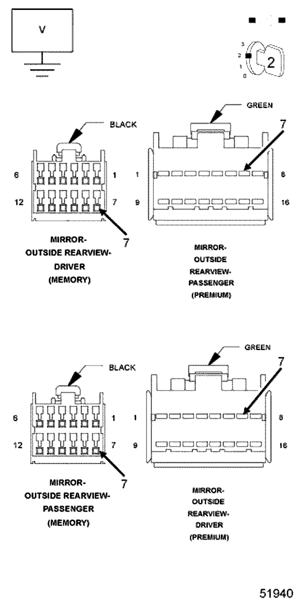 Measure the voltage of the (P145) Mirror Position Sensor Supply circuit and ground at the mirror connector.