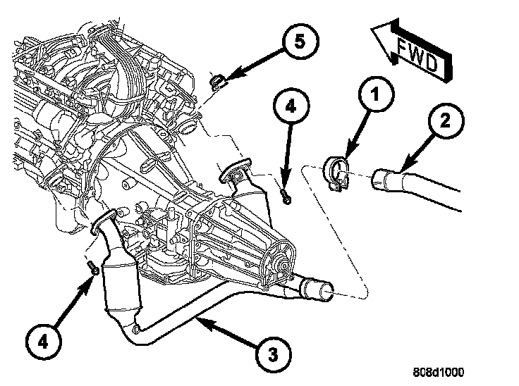 4. Remove the catalytic converter-to-manifold bolts (5).