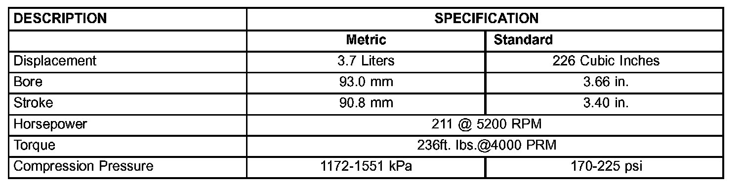SPECIFICATIONS - 3.7L ENGINEGENERAL SPECIFICATIONS: