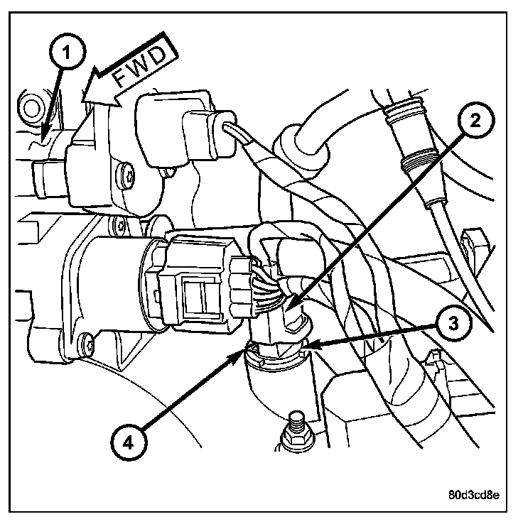 3. Position sensor (3) into intake manifold and rotate clockwise until past release tab.