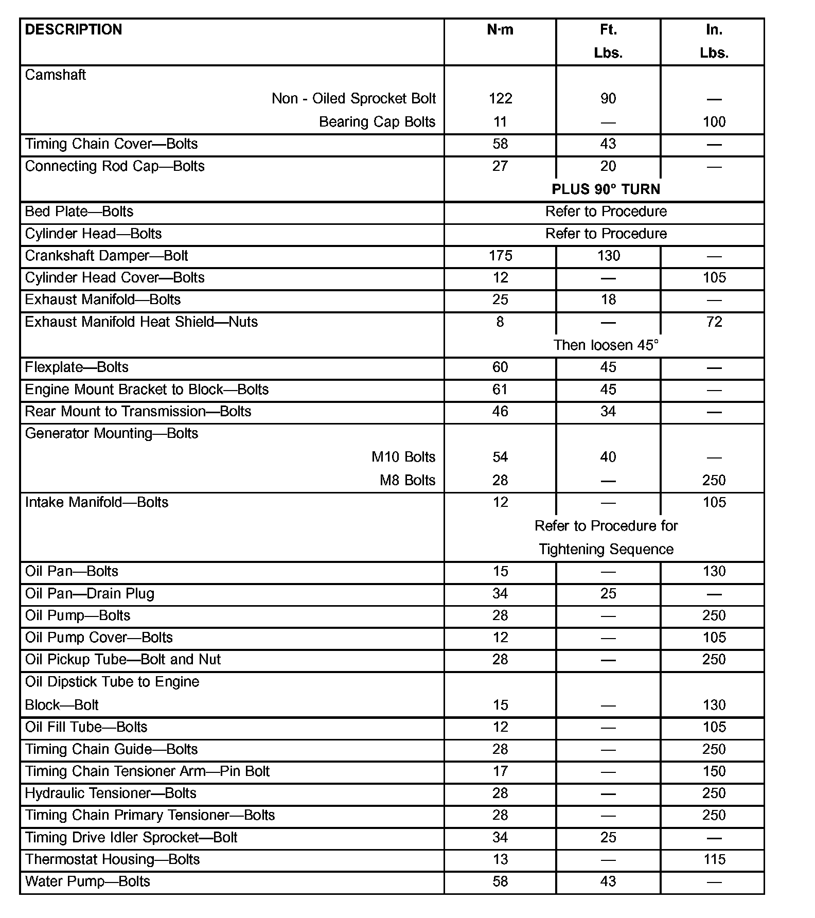 Engine Torque Specifications
