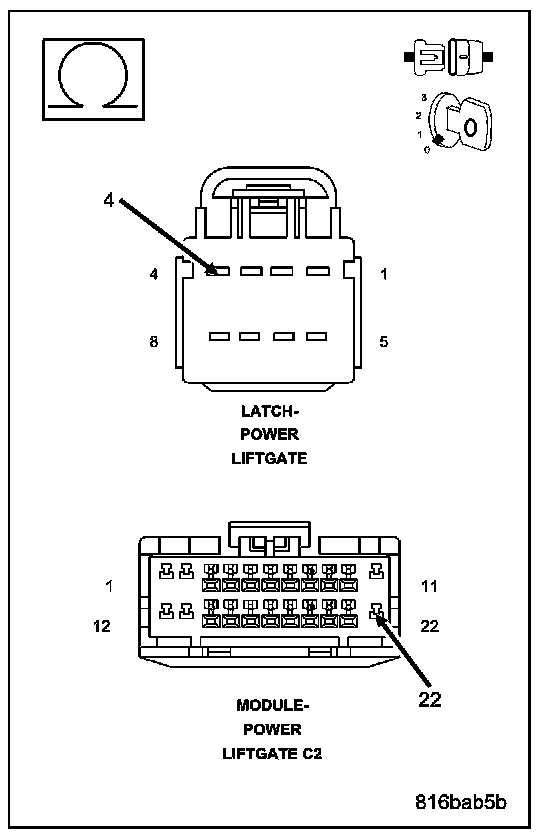 Measure the resistance of the (Q85) Liftgate Latch Release Driver circuit between the PLG C2 connector and the Latch connector.