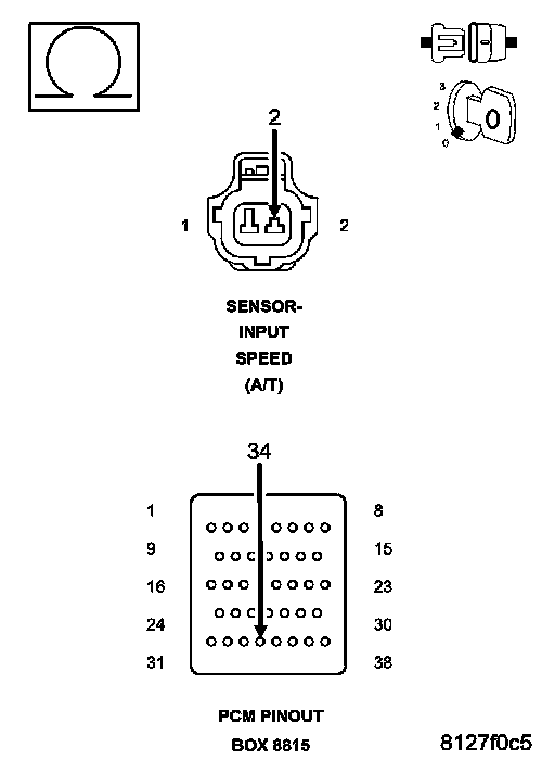 3. If the common speed sensor ground circuit is lost, both sensor inputs will read the signal from the input speed sensor at idle in neutral. Since the input speed sensor reads 60 teeth from the input clutch hub and the output speed sensor reads 30 teeth from the park gear, the result is an apparent speed ratio of 1:2 and may cause the DTC P1794 to set when at a stop.