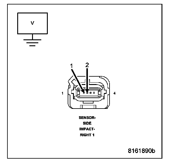 Measure the voltage of the (R14) Right Side Impact Sensor 1 Signal circuit and (R16) Sensor Ground circuit at the Right Side Impact Sensor 1 connector and ground.