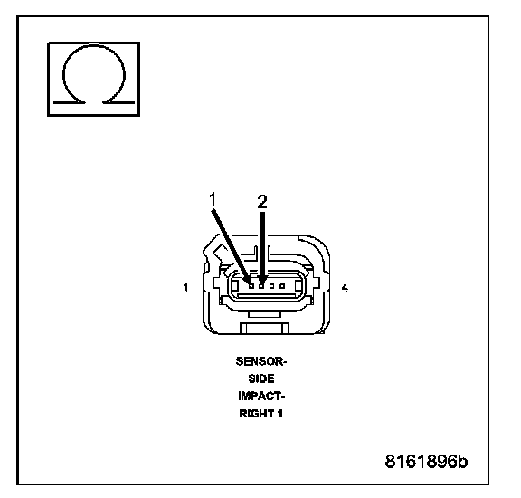 Measure the resistance between the (R14) Right Side Impact Sensor 1 Signal and (R16) Sensor Ground circuits at the Right Side Impact Sensor 1 connector.