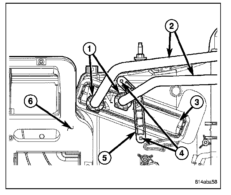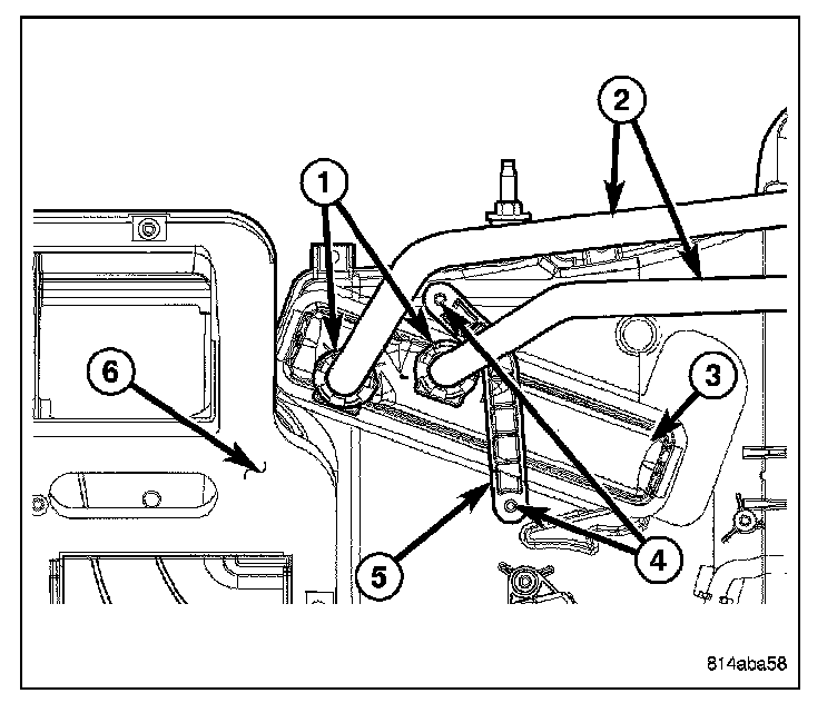 4. Install the heater core tubes (2) through the dash panel and to the heater core.