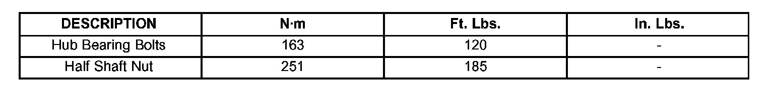 TORQUE SPECIFICATIONS: