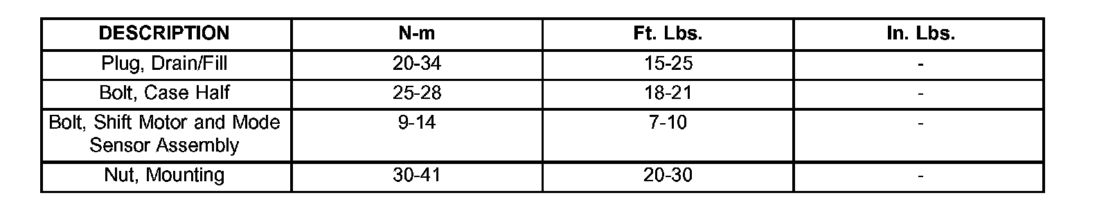 TORQUE SPECIFICATIONS: