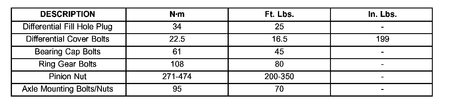 TORQUE SPECIFICATIONS: