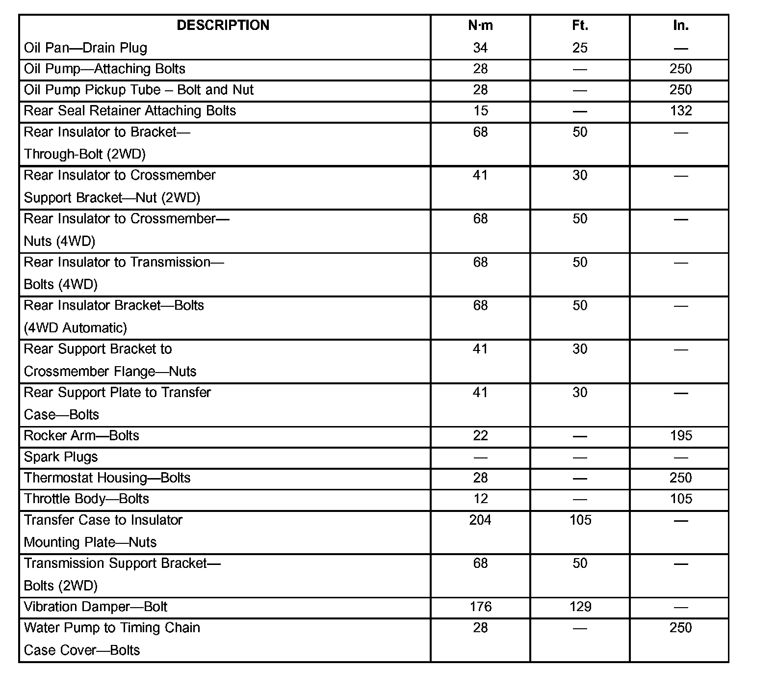 TORQUE CHART 5.7L ENGINE: