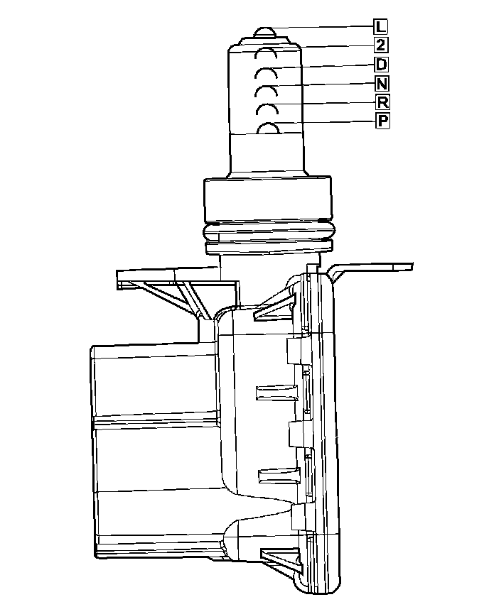 The sensor is mounted in the transmission housing near the valve body, just above the pan rail. It's in the same position as the Park/Neutral switch on other transmissions. The TRS contacts a cammed surface on the manual valve lever. The cammed surface translates the rotational motion of the manual lever into the linear motion of the sensor. The cammed surface on the manual lever is comprised of two parts controlling the TRS signal: The insulator portion contacts the switch poppet when the manual lever is not in PARK or NEUTRAL. The manual lever itself contacts the poppet when the lever is in PARK or NEUTRAL; providing a ground for the signal from the starter relay and the appropriate engine controller.