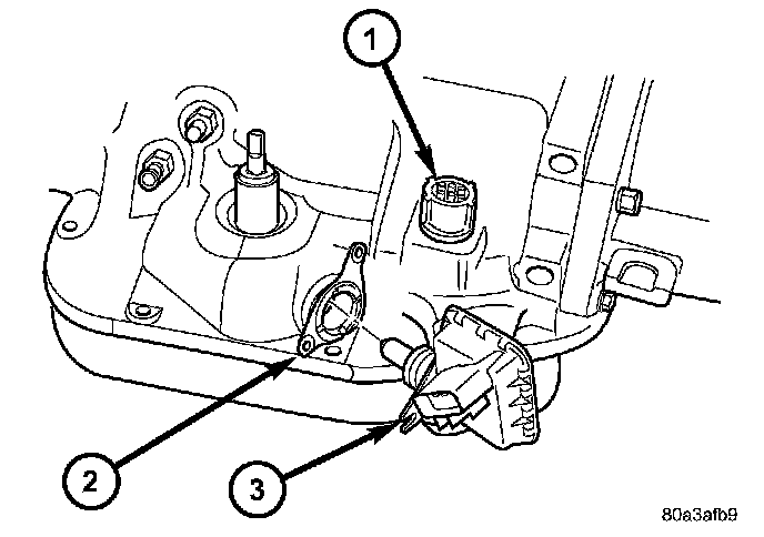 3. Install the TRS (3) into the mounting bracket (2) with the wiring connector facing the front of the transmission.