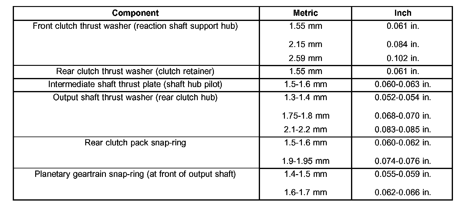 THRUST WASHER/SPACE R/SNAPRING DIMENSIONS: