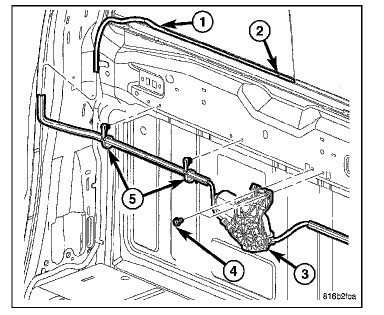 8. Separate the support clips (5) and remove the regulator assembly (3).