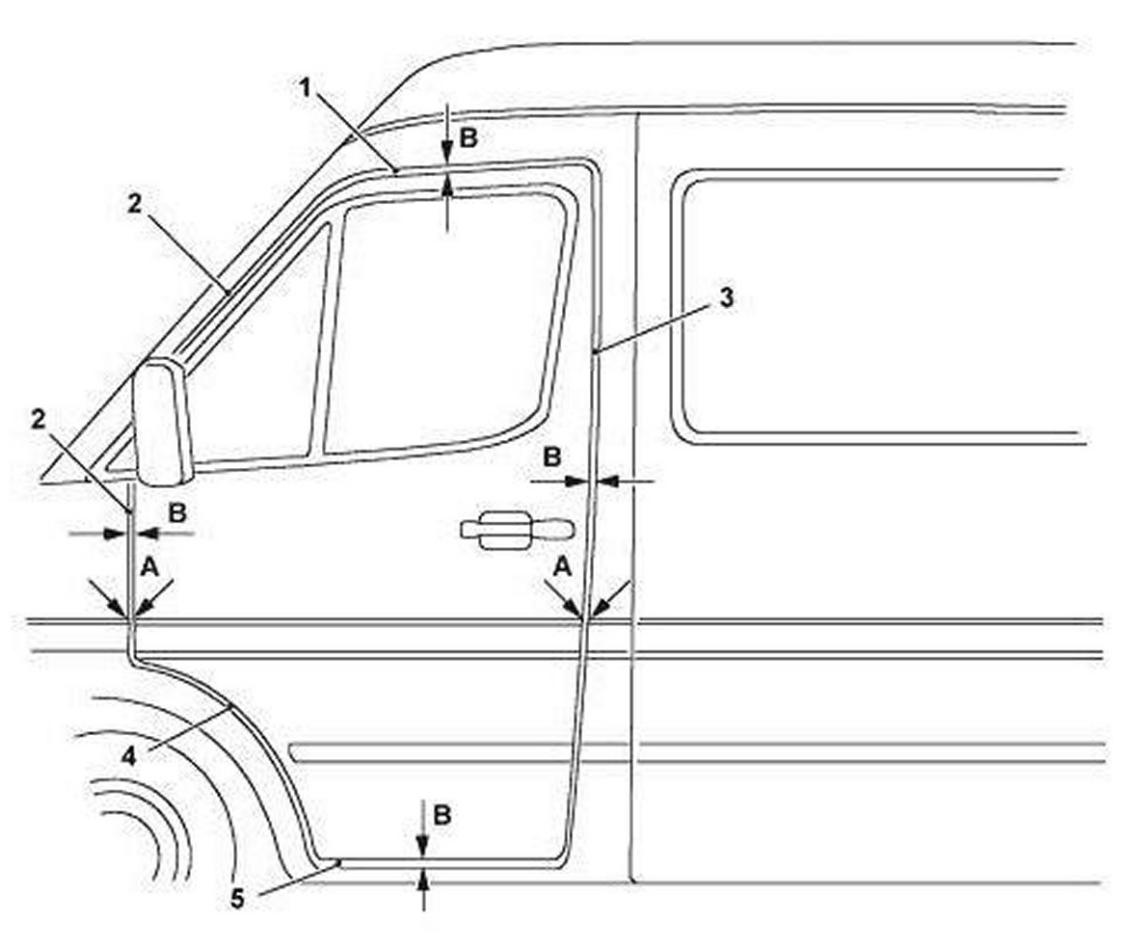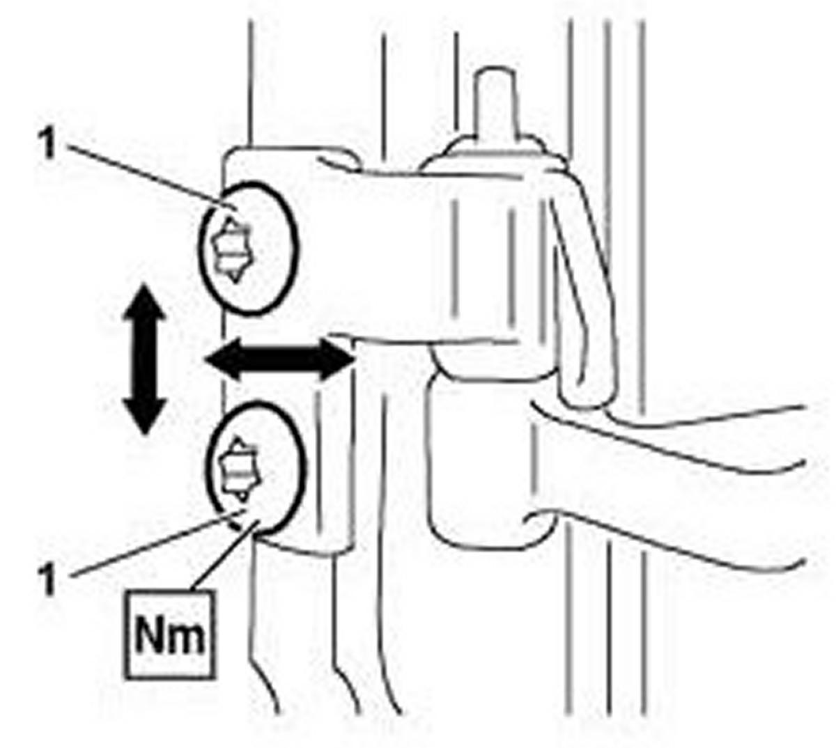 Adjust front door contour transitions flush up to max. 1 mm recessed, at rear with 1 mm overlap (wind noises) Rotary tumbler should engage in the center of the striker eye.
