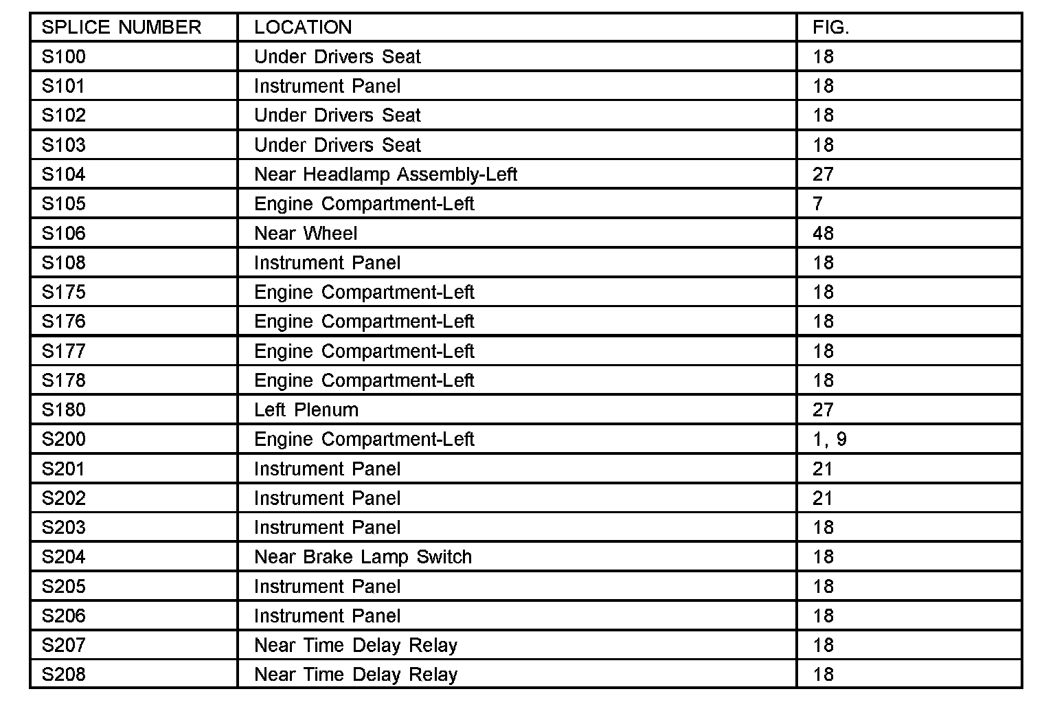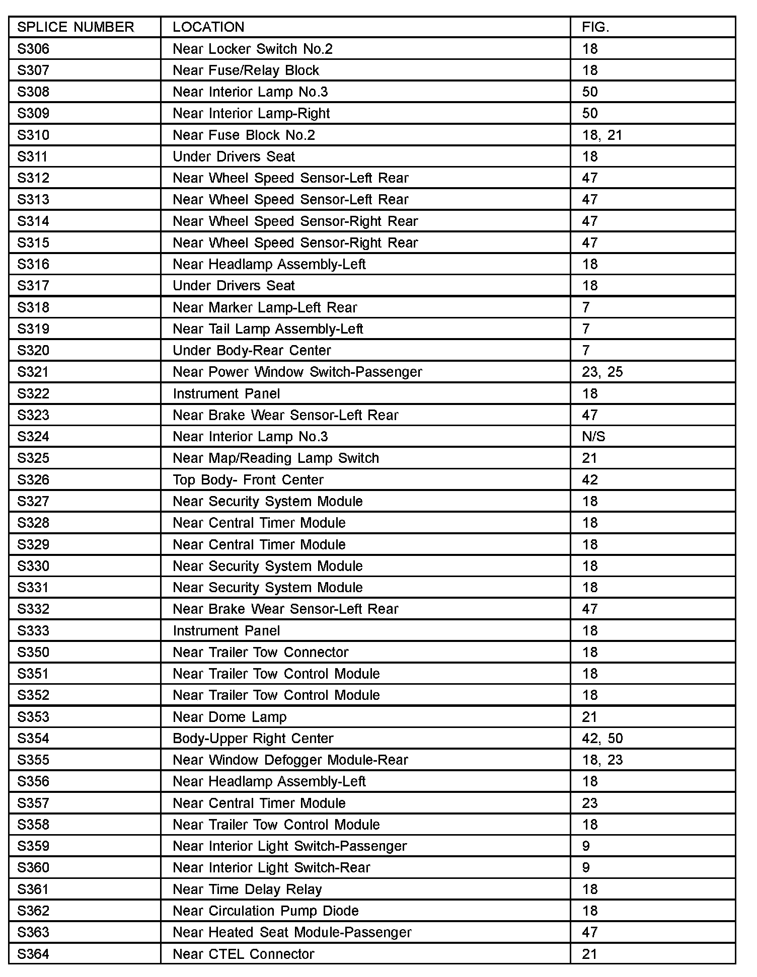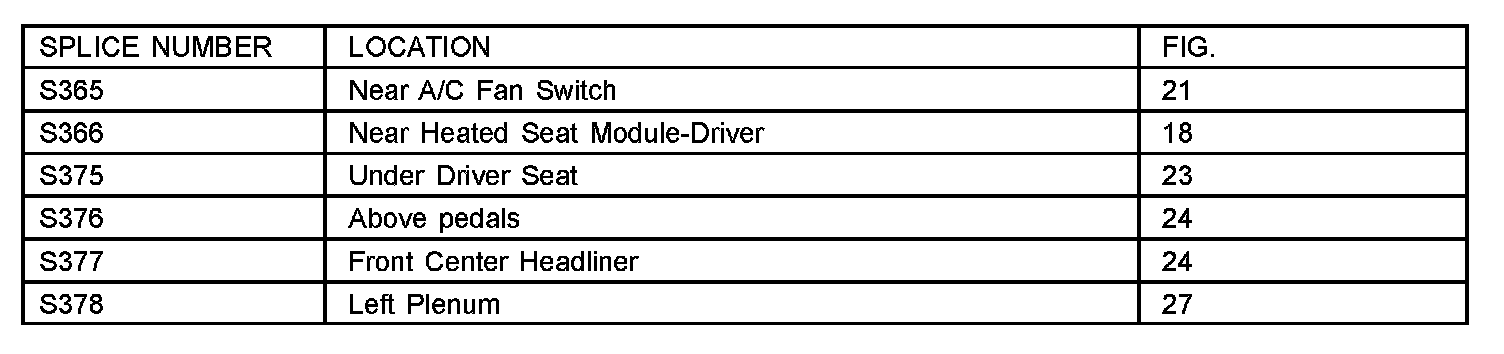 The abbreviation T/O (Take Out) is used in the location column to indicate a point in which the wiring harness branches out to a component.