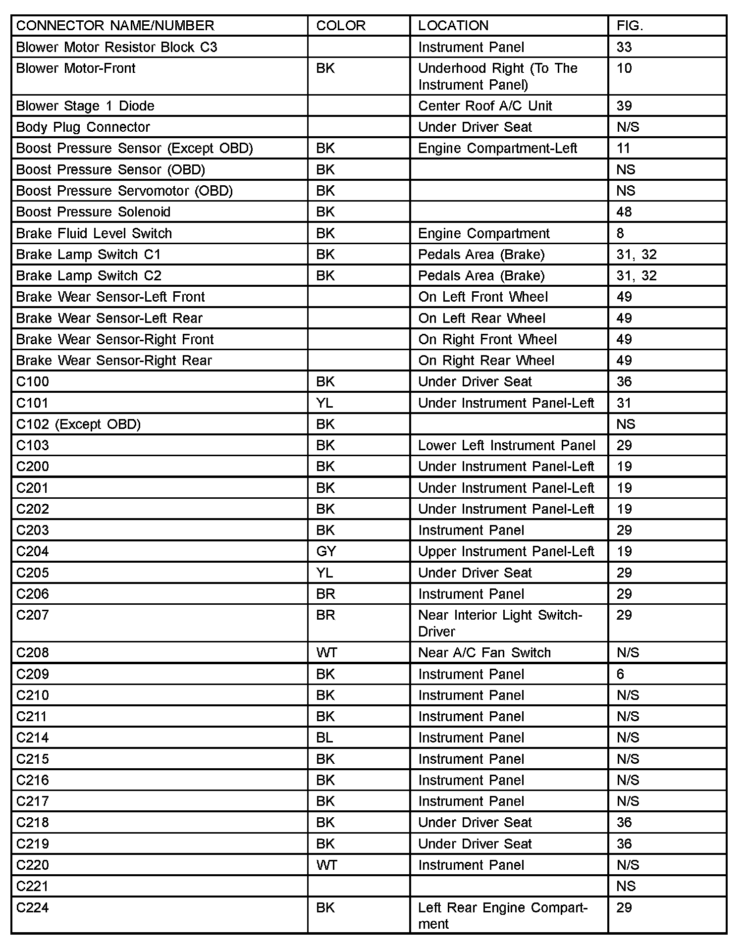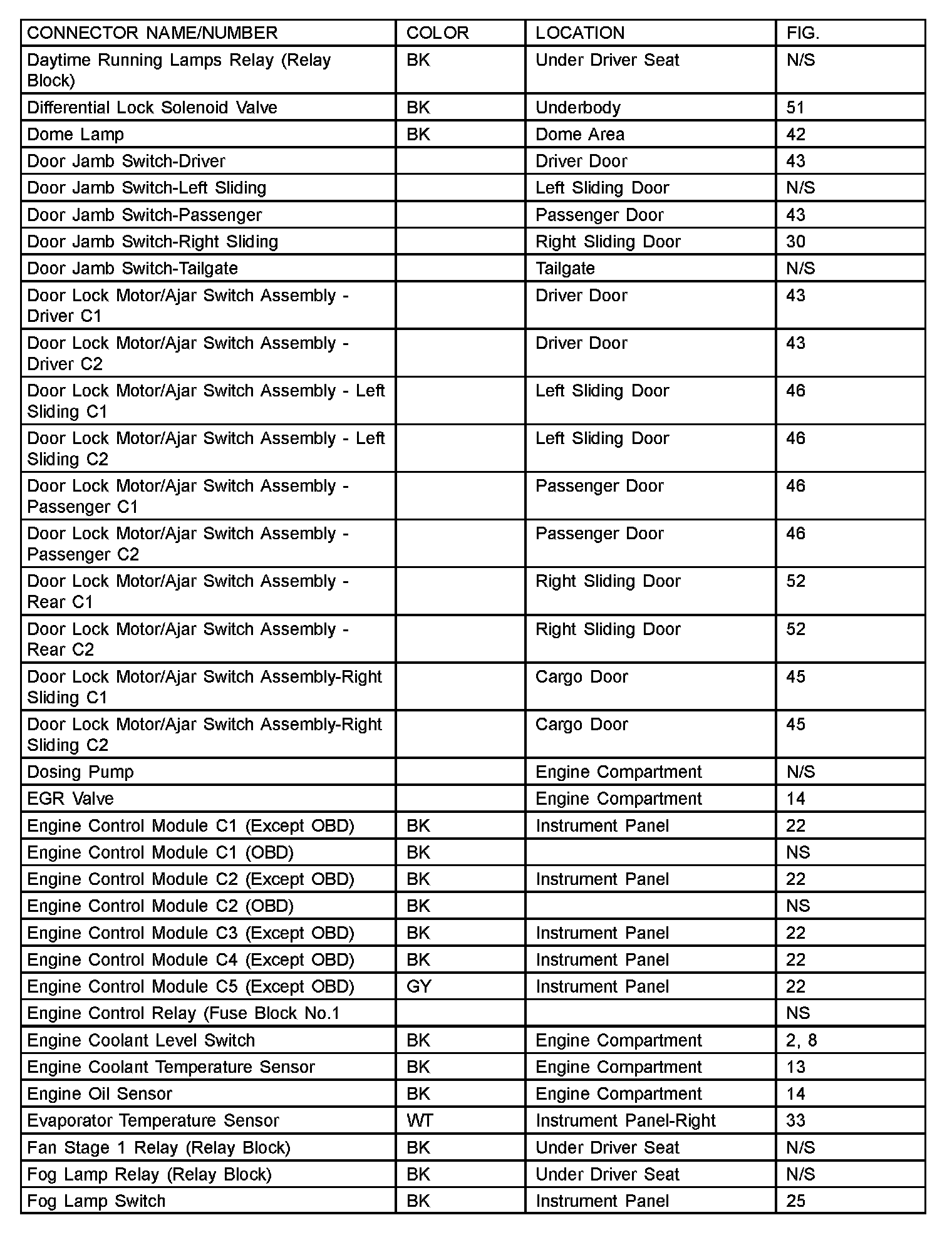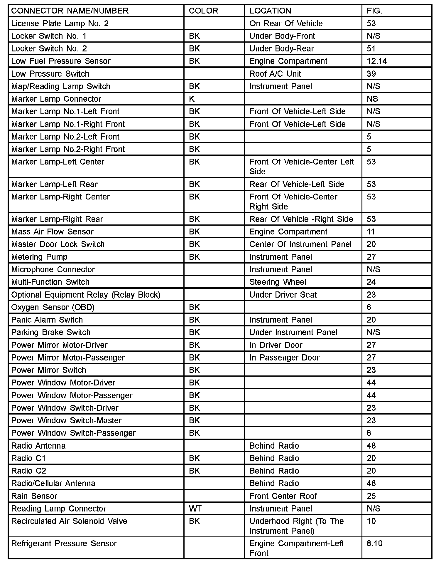 If a link on the index chart to a figure is not provided, that means that the connector and/or figure in question does NOT apply to the vehicle model selected.