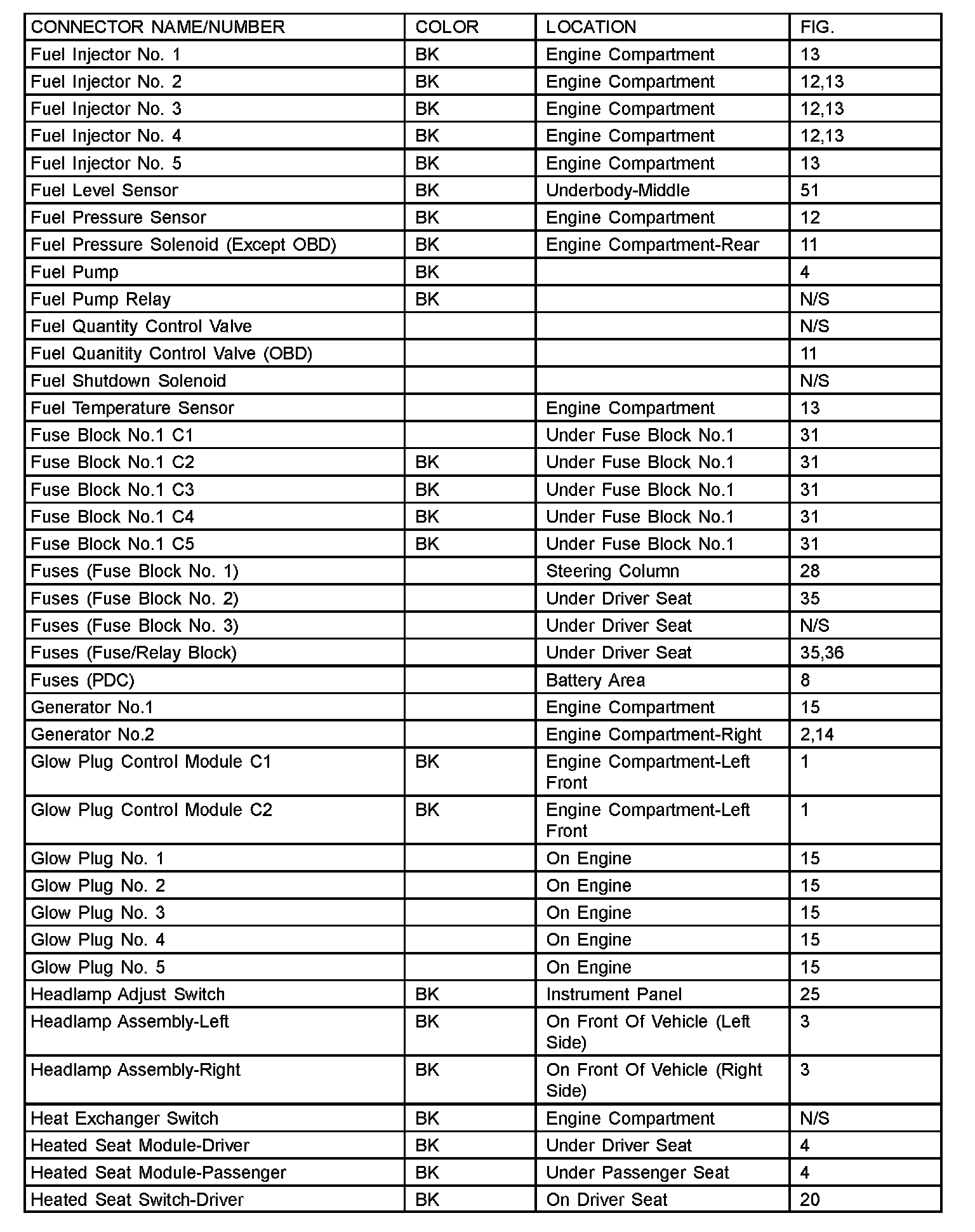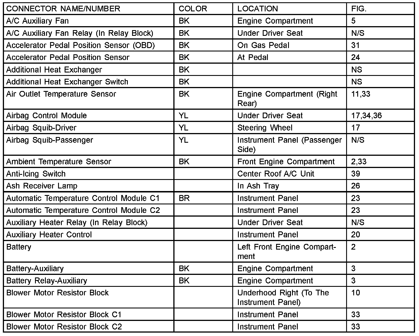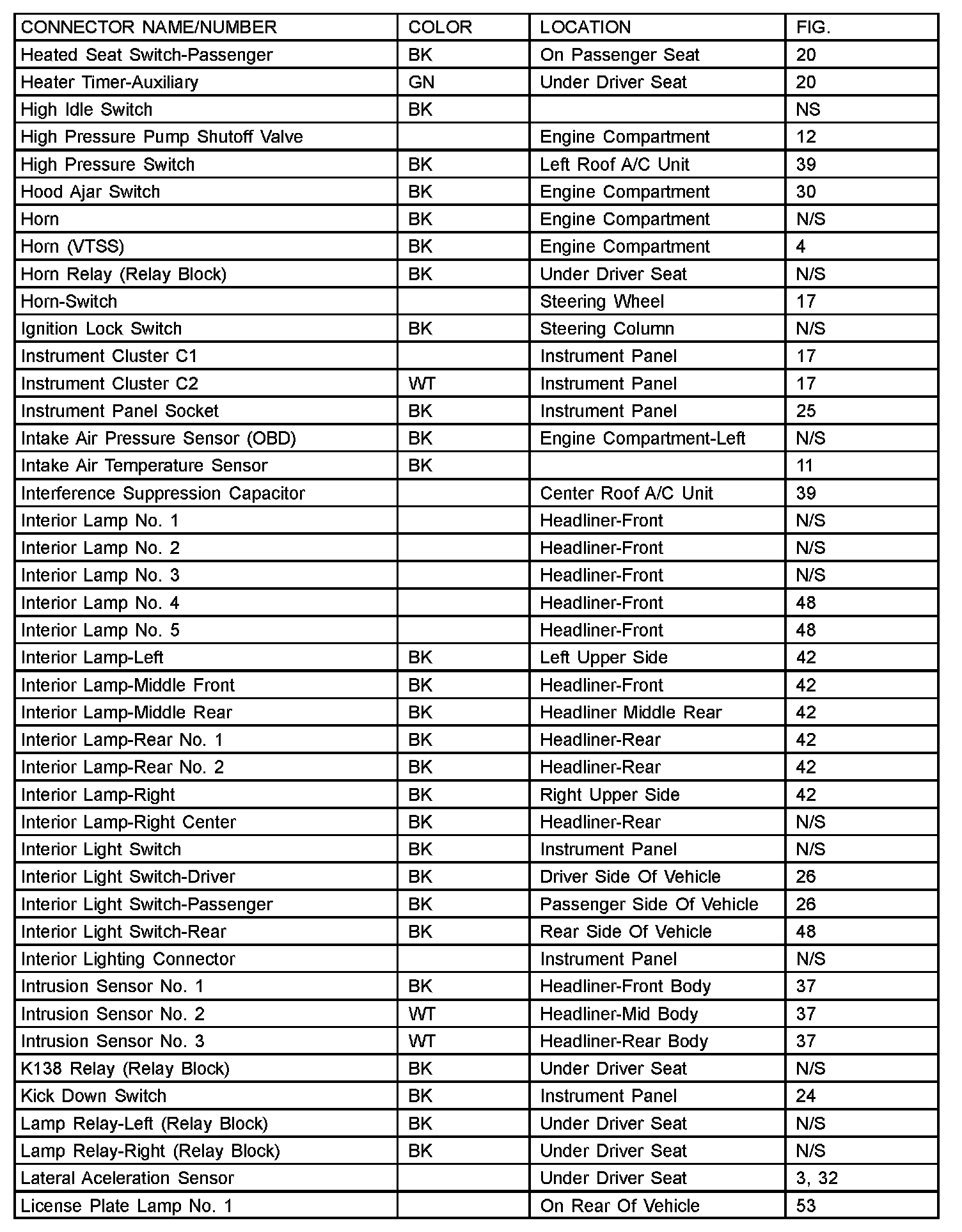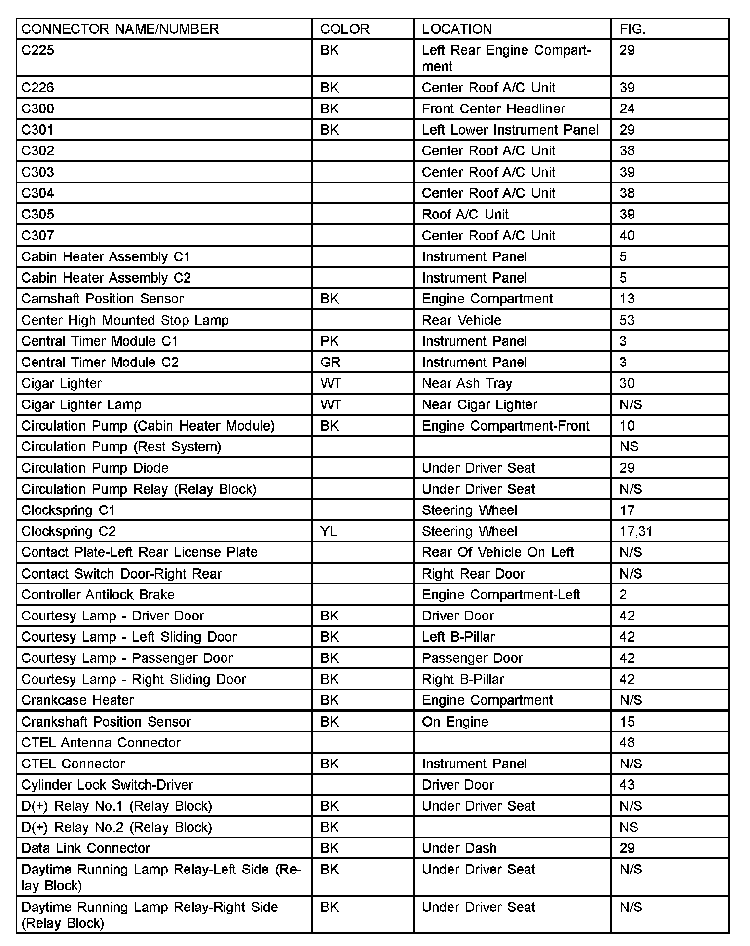If a link on the index chart to a figure is not provided, that means that the connector and/or figure in question does NOT apply to the vehicle model selected.