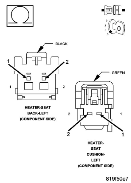 For the seat cushion element the resistance value is 3 to 5.5 ohms.