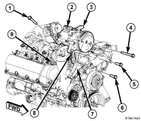 - The front outboard bolt (4) to 55 Nm (41 ft. lbs.).