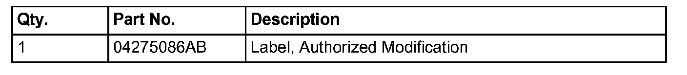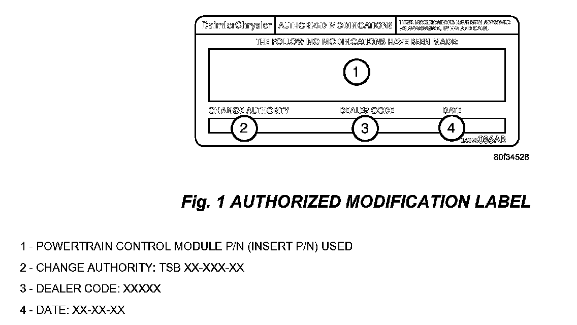 6. Type the necessary information on the "Authorized Modification Label" p/n 04275086AB and attach near the VECI label (Fig. 1).