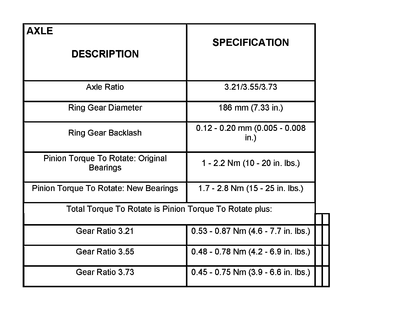 Axle Specifications: