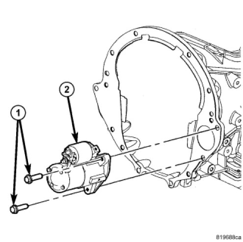 1. Rotate starter assembly (2) to allow positioning into transmission.