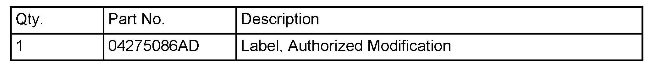 20. Type the necessary information on the Authorized Modification Label p/n 04275086AB and attach near the VECI label