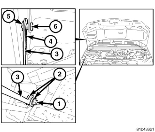 4. Using a grease pencil or equivalent, mark the position of the hinges on the hood to aid installation.