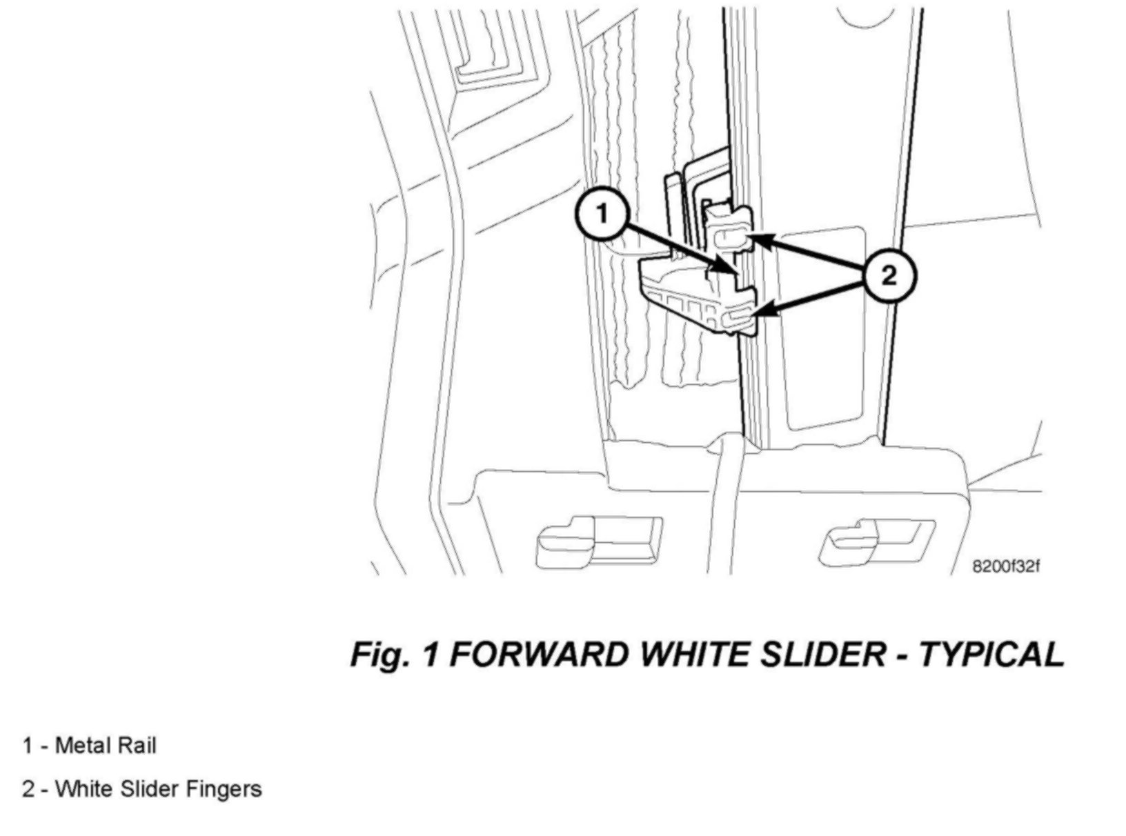 6. Apply 0.5 oz. of white lithium grease pn 68003883AA to metal rail between slider fingers (Fig 2).
