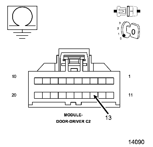 3. Measure the resistance between ground and the (Q221) Master Switch Driver Window Mux circuit in the Driver Door Module C2 connector.