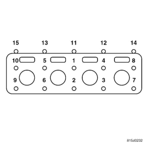 - Step 2- Tighten M12 cylinder head bolts, in sequence, to 54 Nm (40 ft. lbs.) and verify M8 bolts to 20 Nm (15 ft. lbs.) torque..