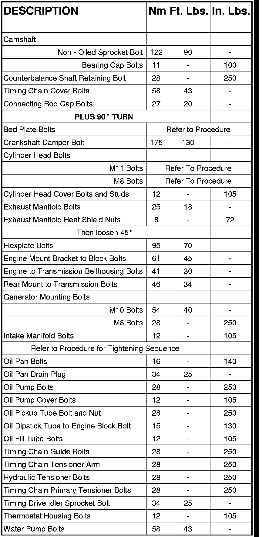 OIL PUMP AND TIMING CHAIN TENSIONER TORQUE AND SEQUENCE