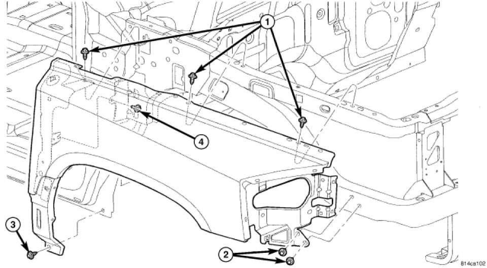 NOTE: Tighten the fender fasteners only after all fasteners are installed loosely and fender is adjusted for gap and flush.