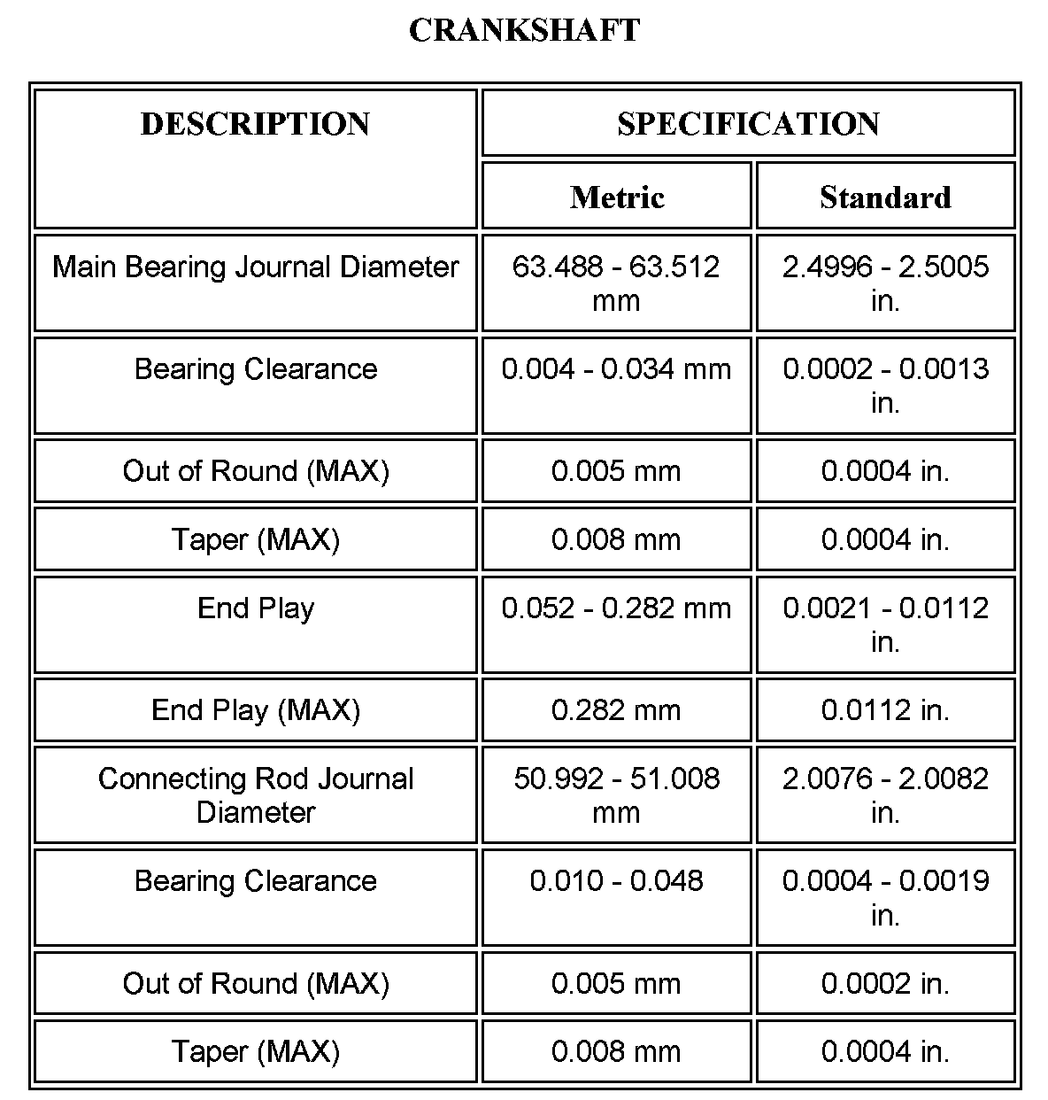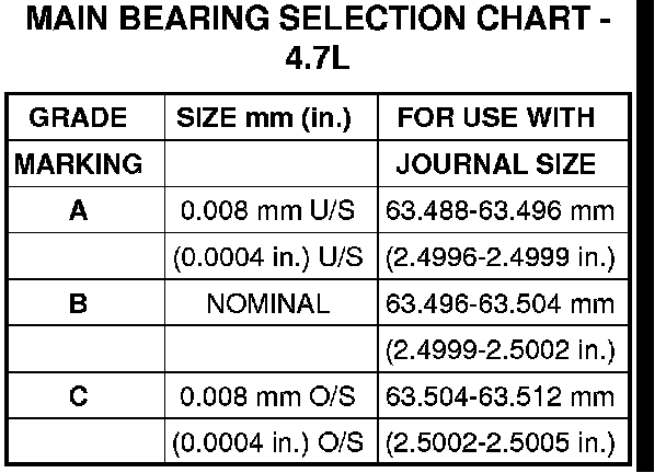 NOTE: Service main bearings are coded. These codes identify what size (grade) the bearing is.