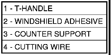 3. Using a windshield cut-out wire (4) or other suitable tool, separate the adhesive (2).
