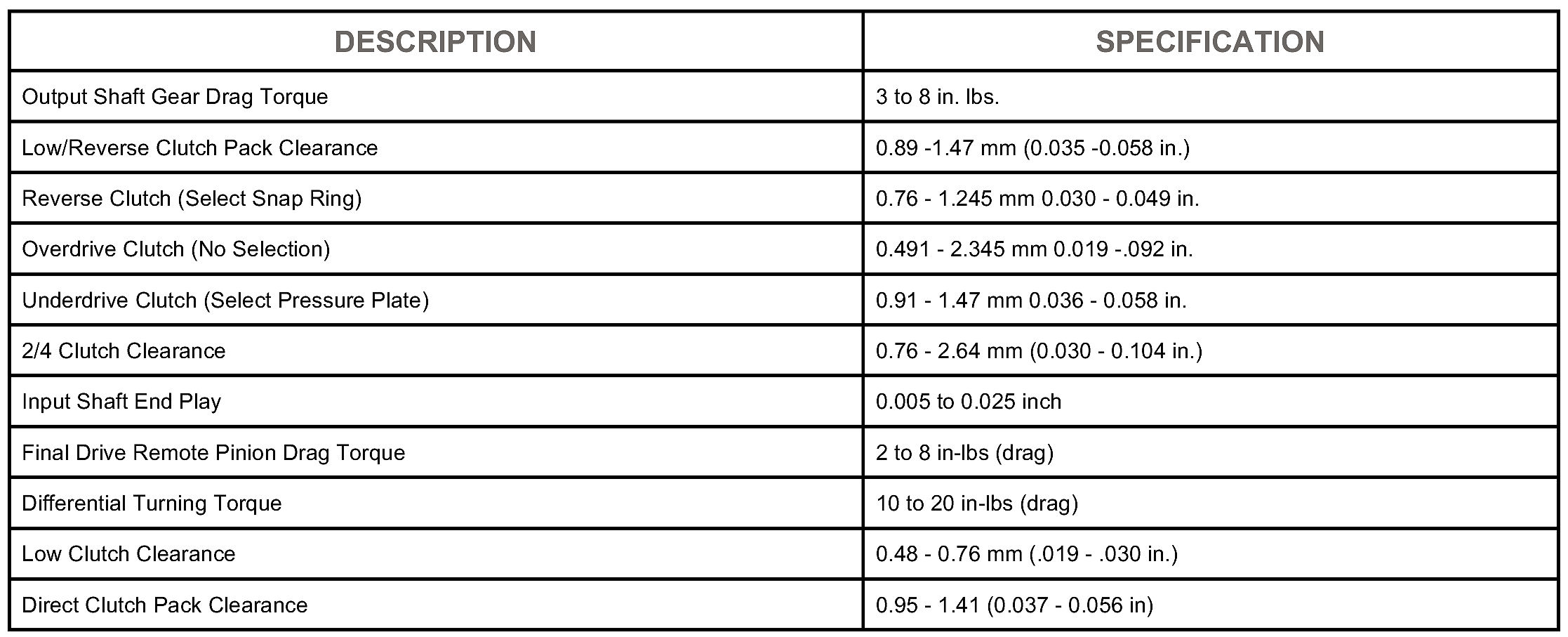 TORQUE SPECIFICATIONS