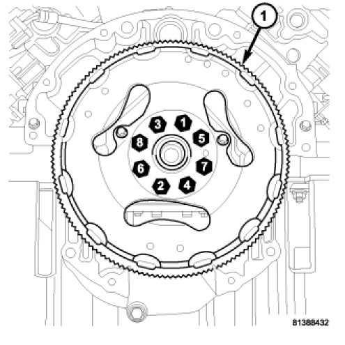 Tighten the flexplate retaining bolts to 95 Nm (70 ft. lbs.).