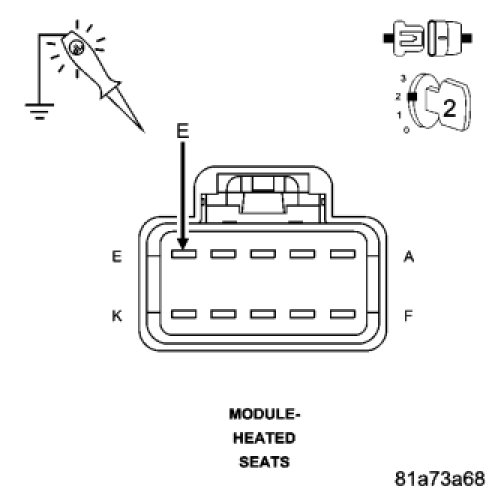 Using a 12-volt test light connected to ground, check the (P693) Heated Seat Module Supply circuit at the HSM connector.