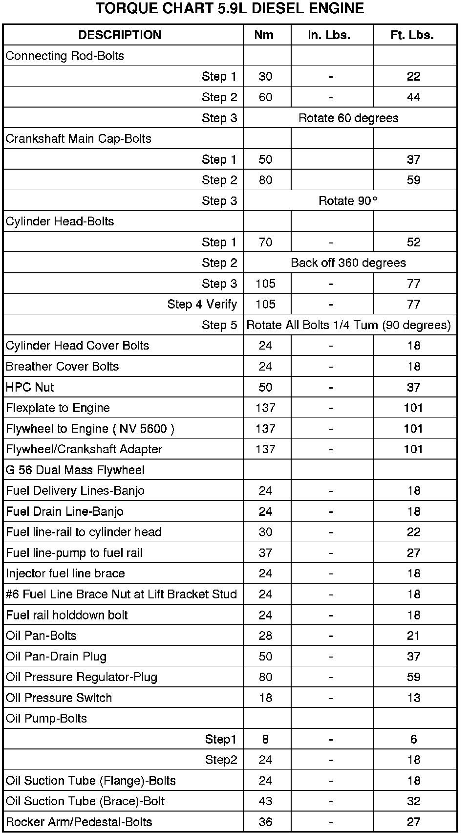 Engine Torque Specifications