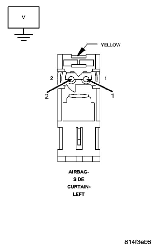 Measure the voltage on the (R1) Left Curtain Squib 1 Line 2 circuit between the Left Side Curtain Airbag harness connector and ground.