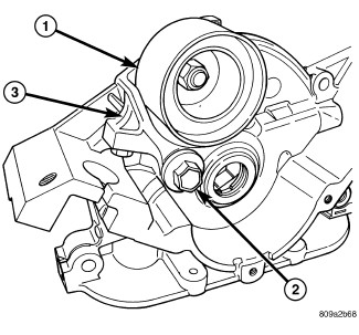 NOTE: The tensioner pulley, bracket, and pivot bolt is serviced as an assembly.